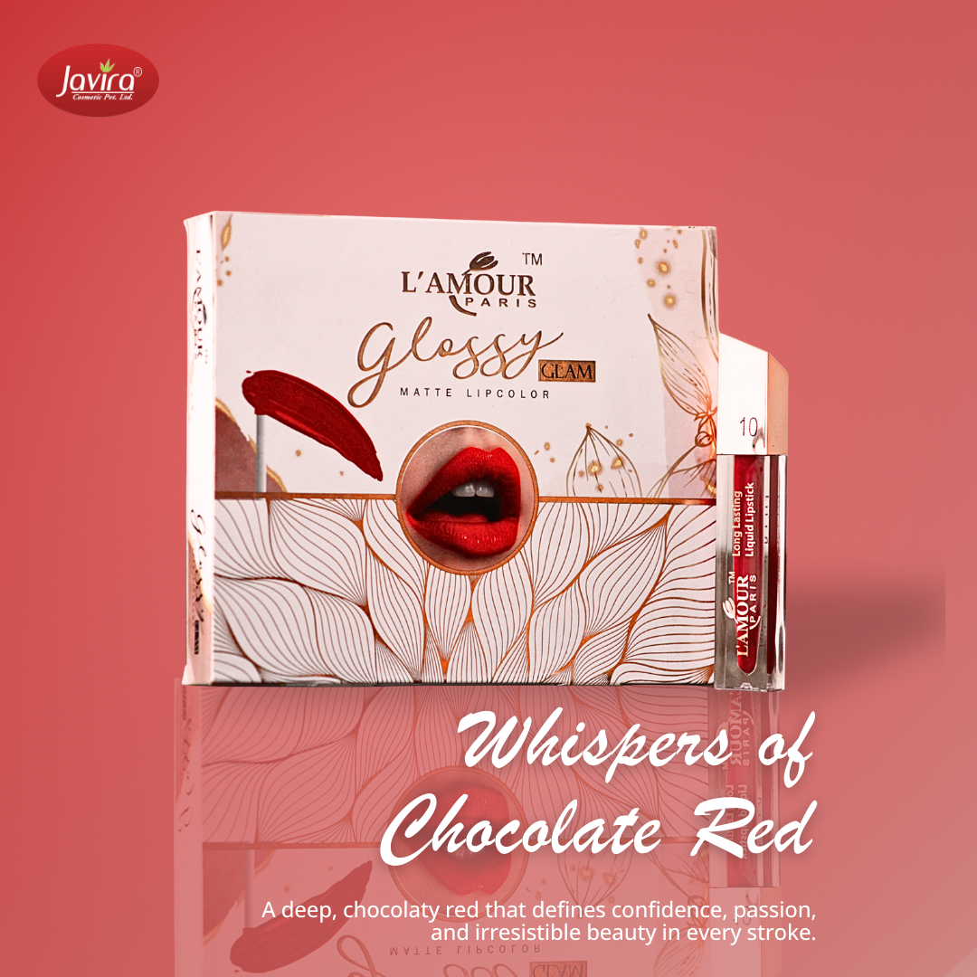 Unveil irresistible beauty with L’AMOUR Paris Glossy Glam Matte Lipcolor in the stunning shade Whispers of Chocolate Red.